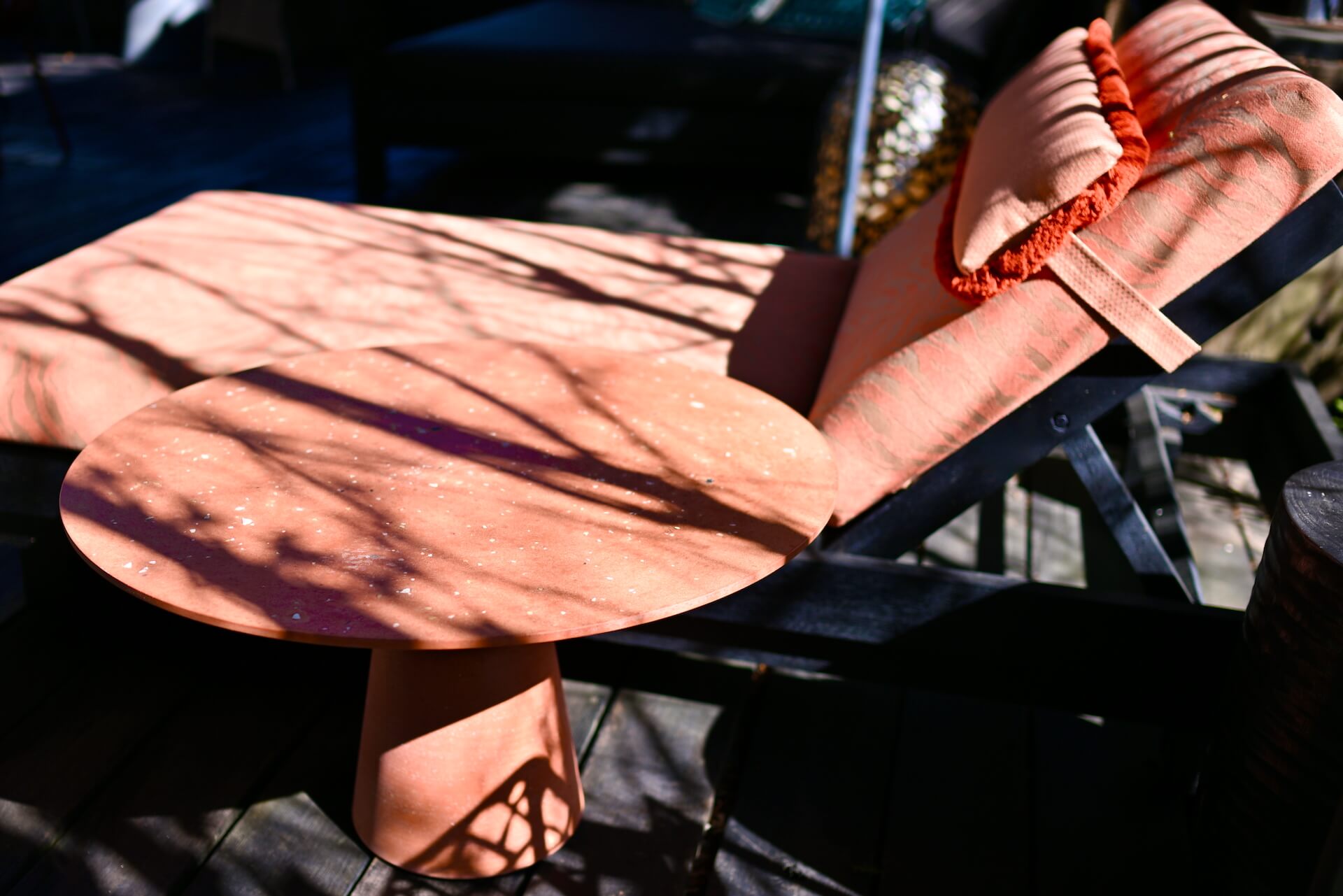I’ve got a thing about colour pops in the garden and have fallen in love with this orange coffee table that happens to match the cover of the lounger.